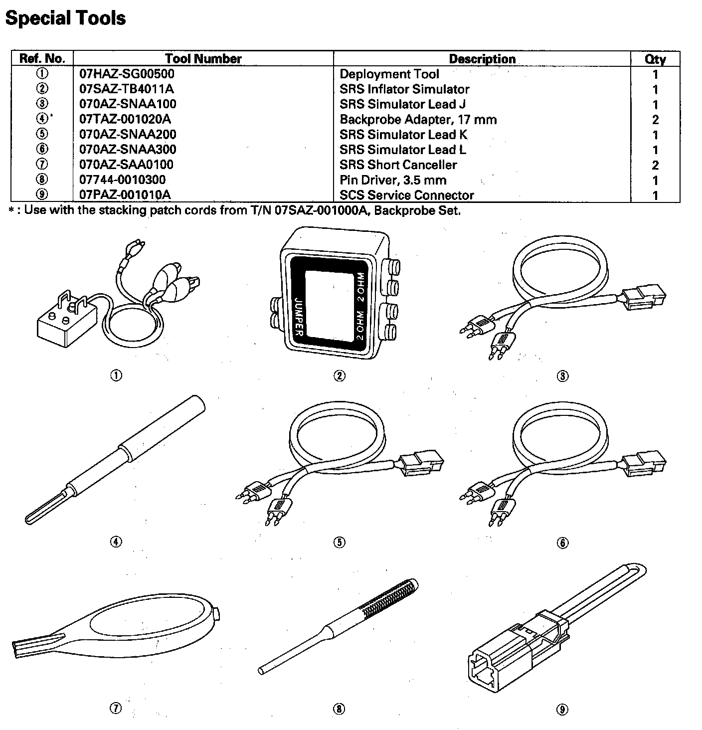 Restraints Special Tools: