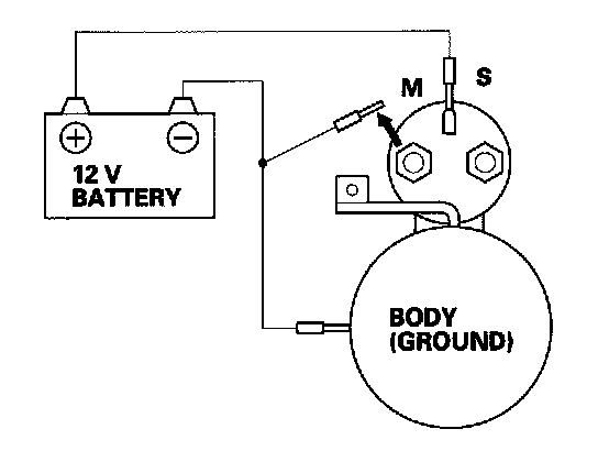 4. Disconnect the battery from the M terminal. If the pinion does not retract, the hold-in coil of the solenoid is working properly.