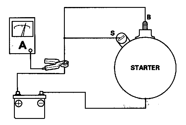 6. If the electric current meets the specification when the battery voltage is at 11.5 V, the starter is working properly.