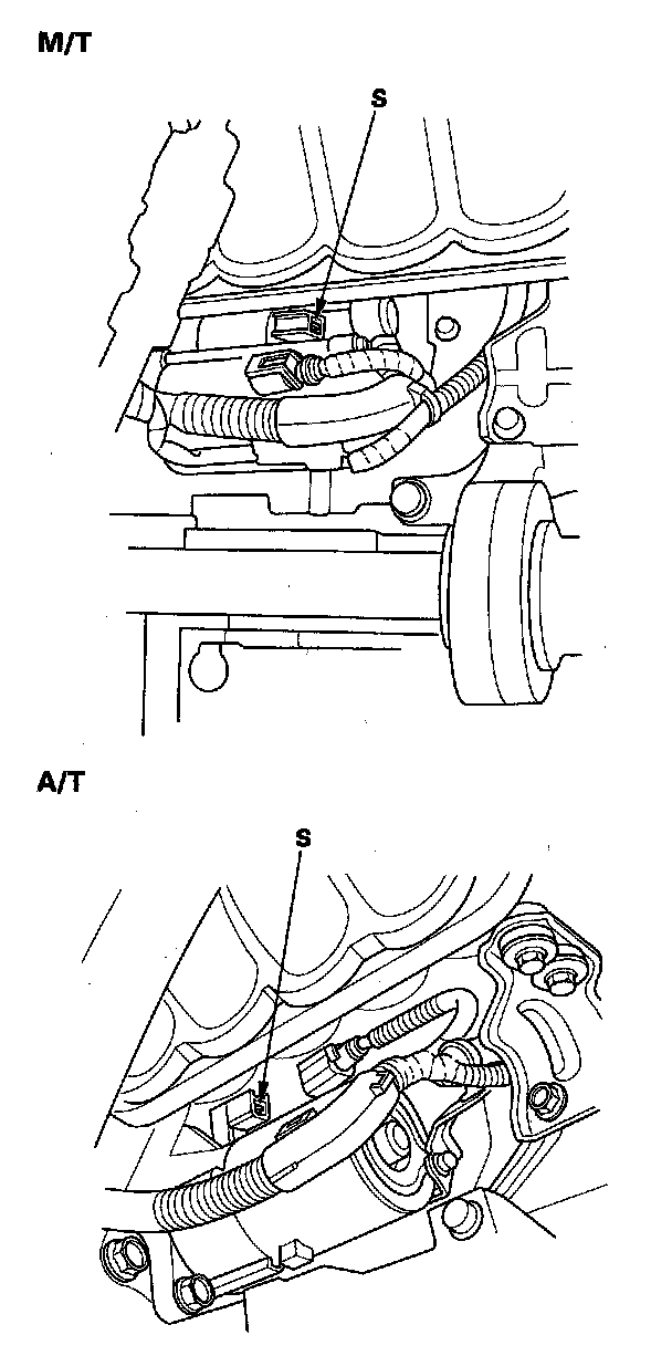 - The transmission range switch and connector (A/T) or the clutch interlock switch and connector (M/T).