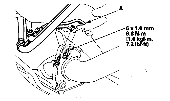 6. M/T model: Remove the shift cable bracket (A).