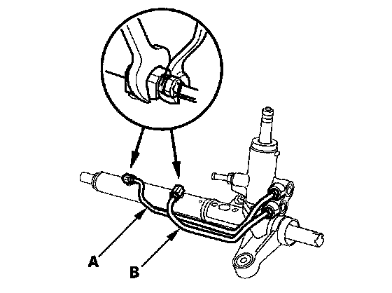 8. Remove the cylinder line A and B from the steering gearbox.