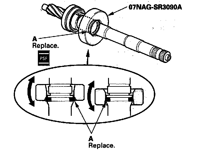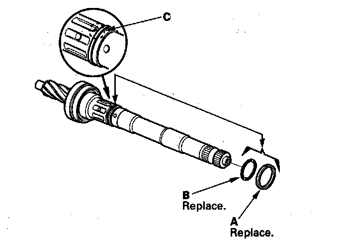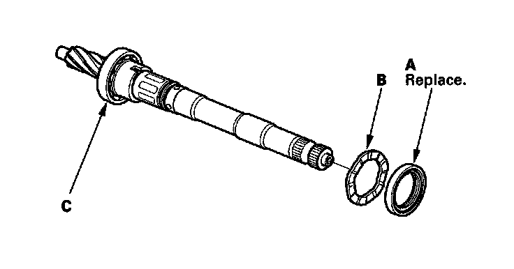 ^ Inspect the ball bearing (C) by rotating the outer race slowly. If there is any excessive play or wear, replace the pinion shaft and sleeve as an assembly.