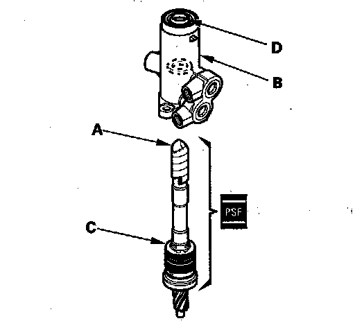 49. Insert the pinion shaft into the valve housing (B). Be careful not to damage the valve seal rings (C) and valve oil seal sealing lip (D).