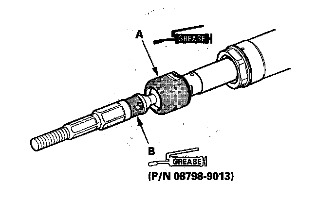 85. Apply a light coat of silicone grease (P/N 08798-9013) to the boot grooves (B) on the rack ends.