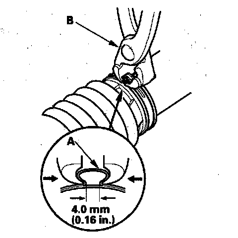 90. Close the ear portion (A) of the band with a commercially available Oetiker 1098 pincers or equivalent (B).