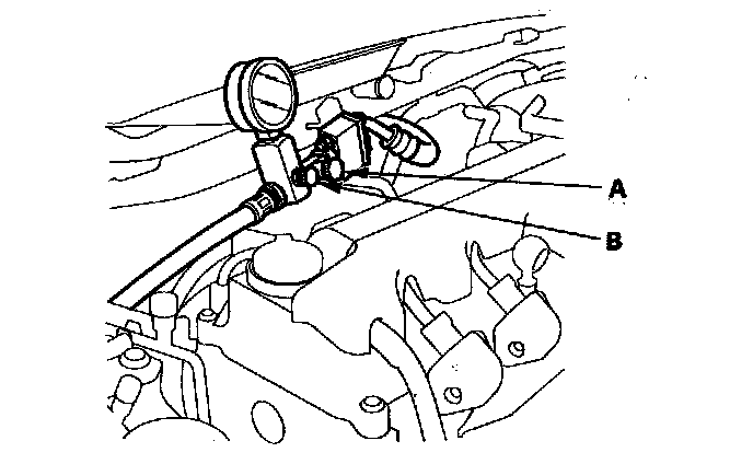 12. Measure steady-state fluid pressure while the engine is idling. If the pump is in good condition, the gauge should be no more than 1,470 kPa (15 kgf/cm2, 213 psi). If it reads higher, check for: