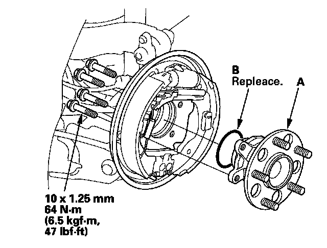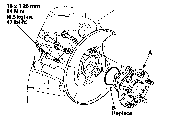 7. Remove the hub bearing unit (A) and the O-ring (B).