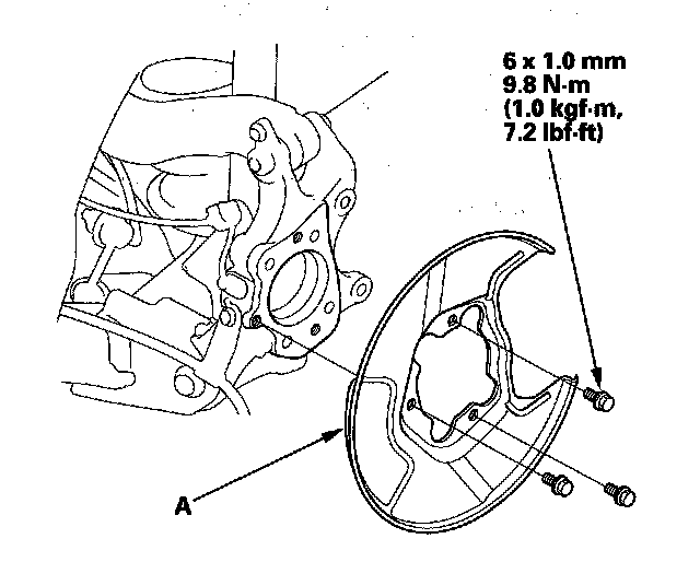 3. Remove the brake hose mounting bolt (A) from the bracket.