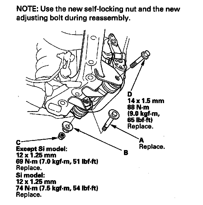 ^ First install all the components, and lightly tighten the bolts and nuts, then raise the suspension to load it with the vehicle's weight before fully tightening to the specified torque values.