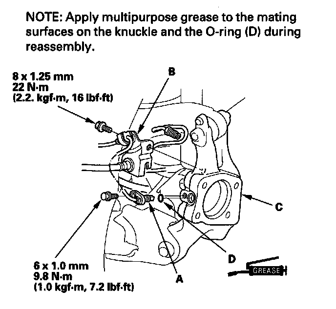 9. Install the knuckle in the reverse order of removal, and note these items:
