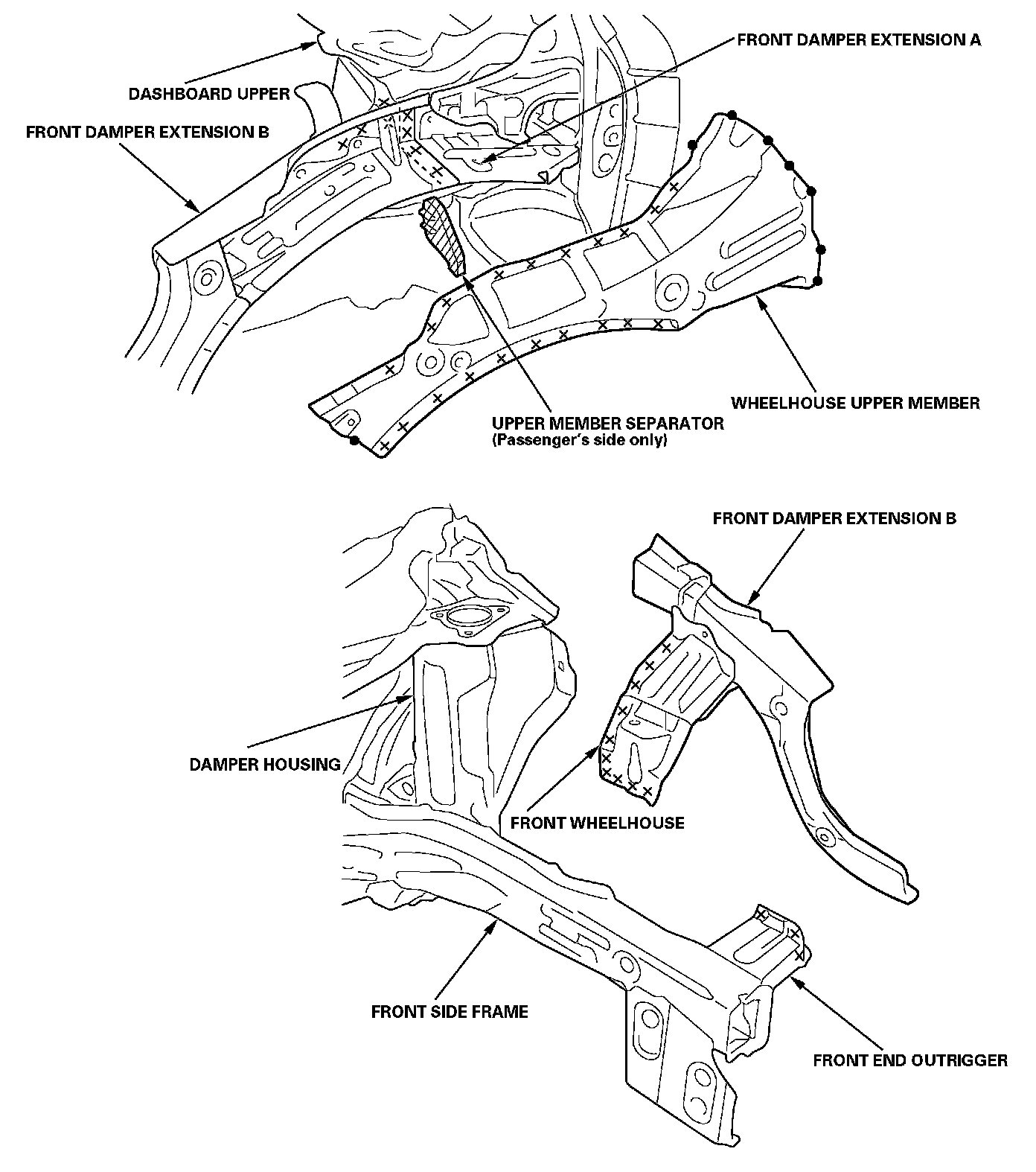 - Remove the wheelhouse upper member, and replace the upper member separator.
