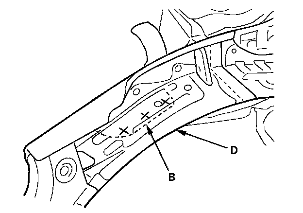 NOTE: Apply the sealer (C) all the way around the separator and inside of the wheelhouse upper member (D), without gaps.