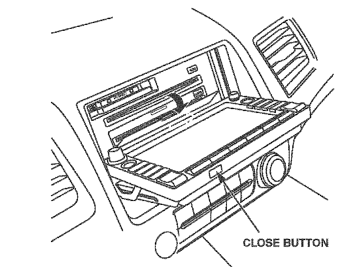 OPEN button - Tilts the screen down to access the CD player and the PC card slot. The navigation DVD is behind the plastic cover.