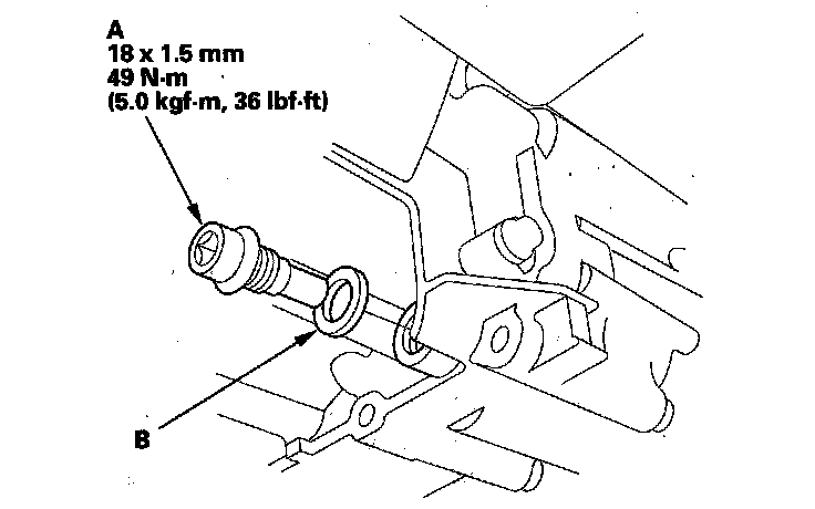 ^ If replacing the shift solenoid harness, remove the shift solenoid harness connector (A), and replace it. Install a new O-ring (B) on the new shift solenoid harness connector, and install it in the transmission housing, then go to step 12.