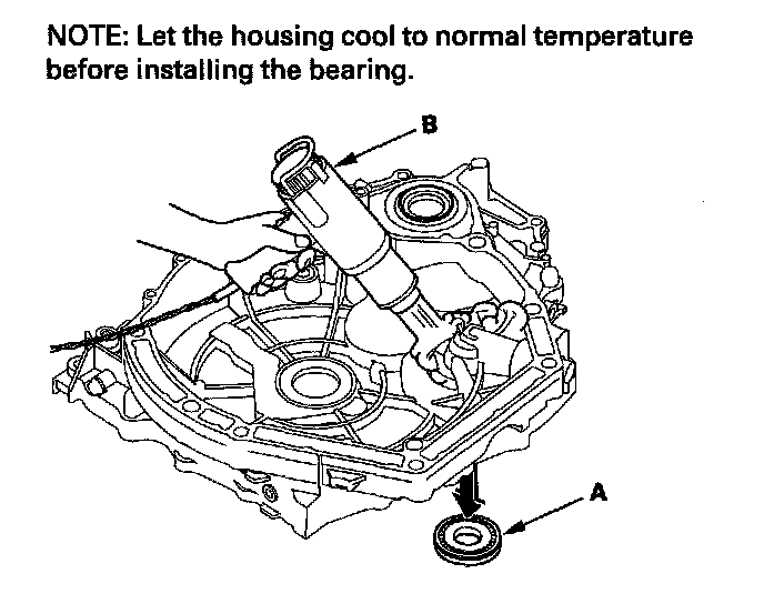 5. Install the secondary shaft bearing using the driver and the 62 x 68 mm attachment securely in the housing.