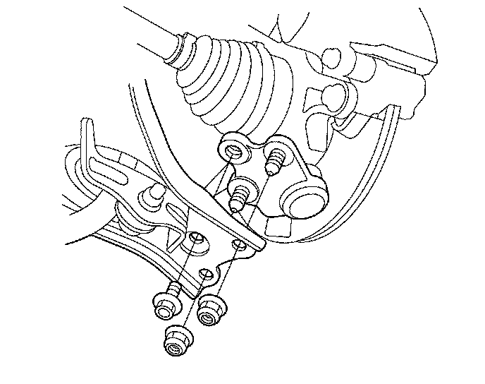 27. Remove the nuts and bolt securing the lower arm and ball joint, and separate the lower arms from the ball joints.