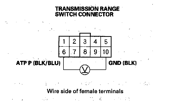 24. Measure the voltage between transmission range switch connector terminals No. 6 and No. 10.