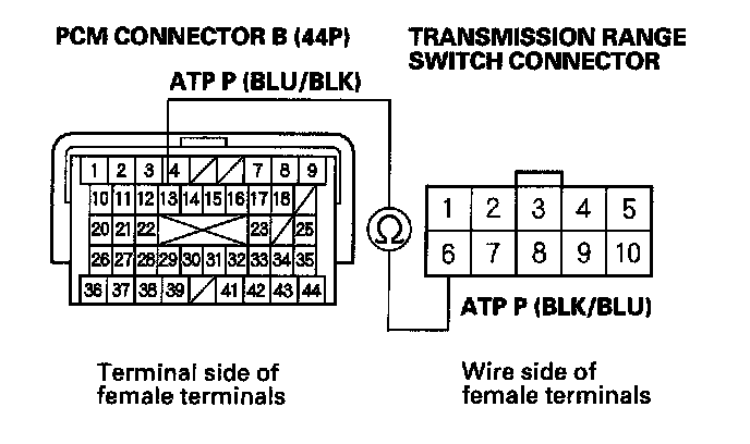 29. Check for continuity between transmission range switch connector terminal No. 10 and body ground.