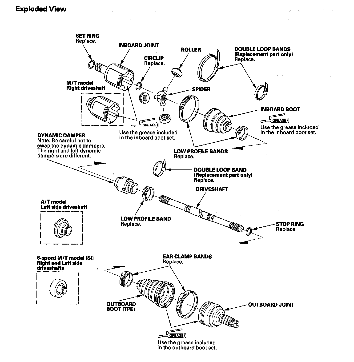6. Pack the inboard joint with the joint grease included in the new inboard boot set.
