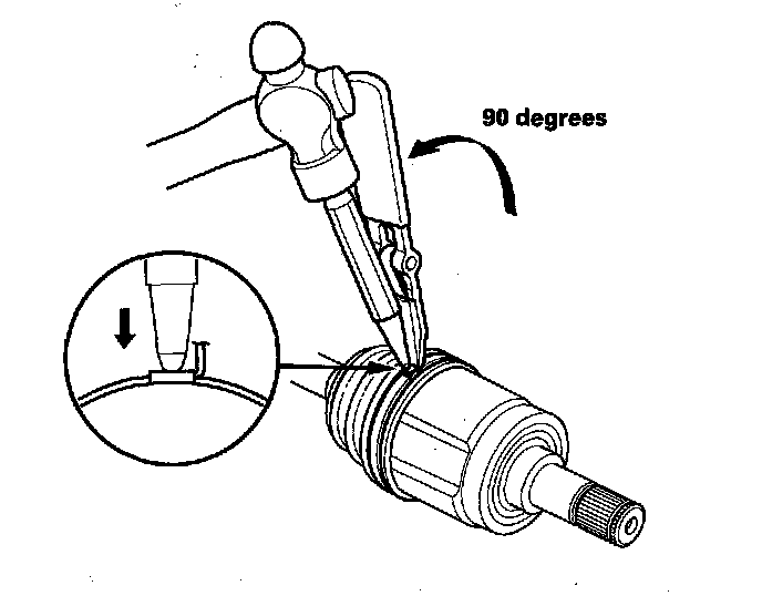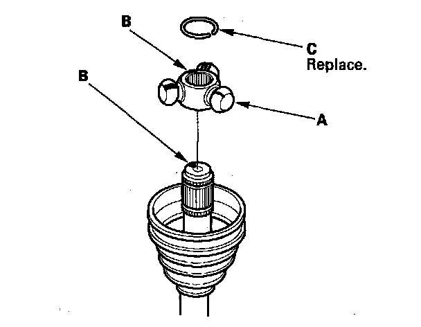 4. Fit the new circlip (C) into the driveshaft groove. Always rotate the circlip in its groove to make sure it is fully seated.