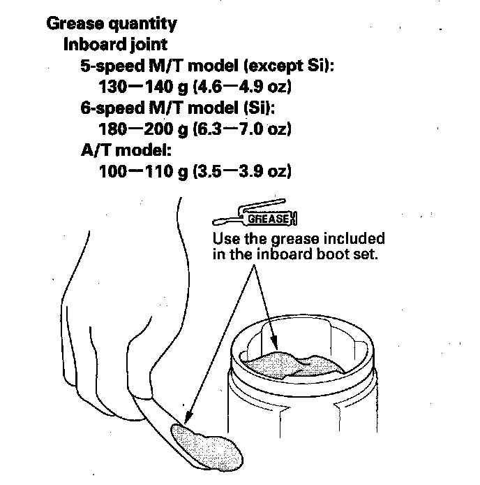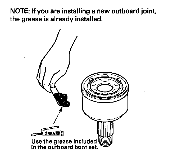 4. Pack about 35 g (1.2 oz) grease included in the new outboard boot set into the driveshaft hole in the outboard joint.