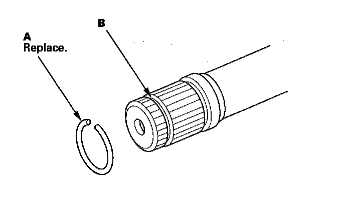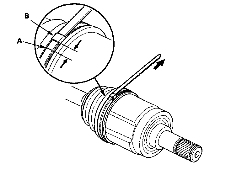 3. Install a new stop ring (A) into the driveshaft groove (B).