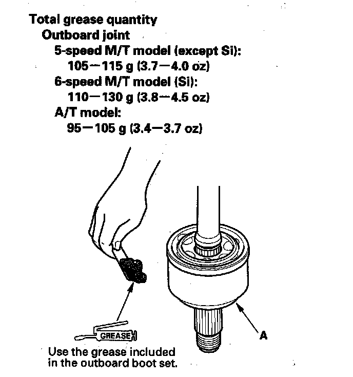 8. Pack the outboard joint (A) with the remaining grease included in the new outboard boot set.