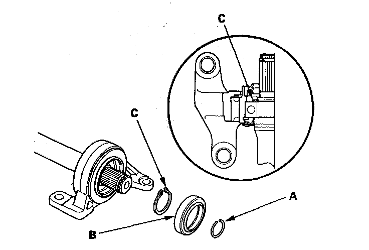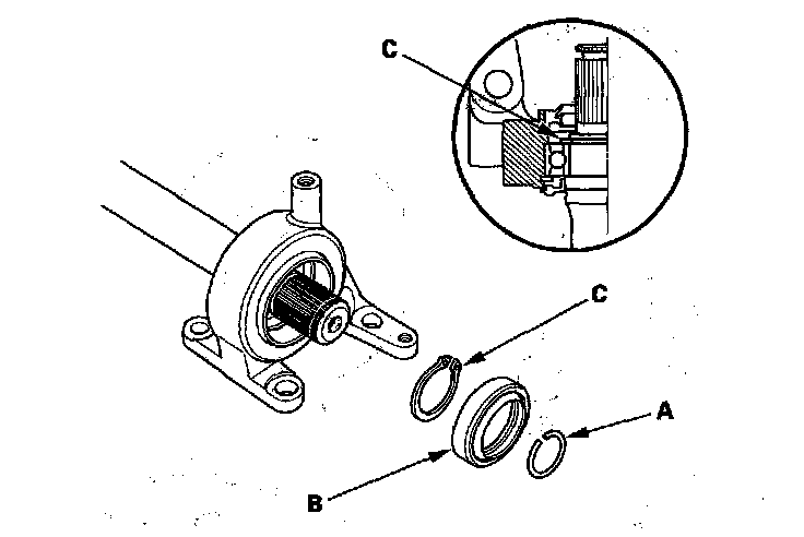 1. Remove the set ring (A), the outer seal (B), and the external snap ring (C).