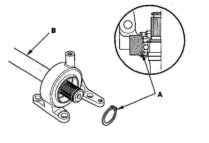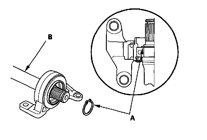 5. Seat the external snap ring (A) into the groove of the intermediate shaft (B).