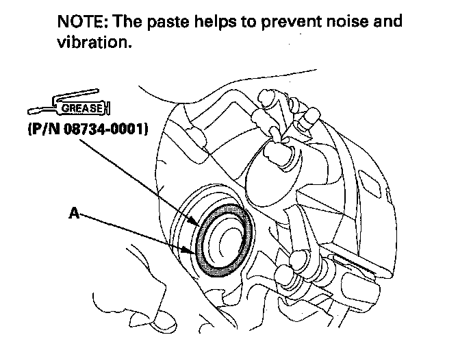 1. Apply about 5 g (0.18 oz) moly 60 paste (P/N 08734-0001) to the contact area (A) of the outboard joint and the front wheel bearing.