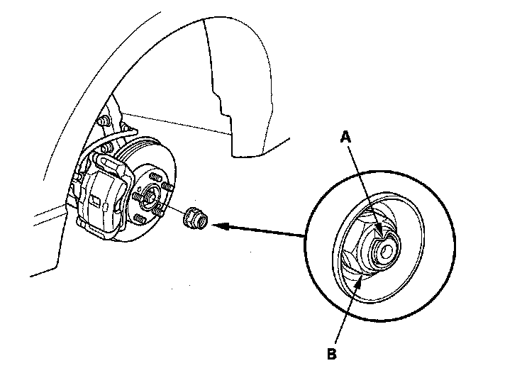 3. Lift up the locking tab (A) on the spindle nut (B), then remove the nut.
