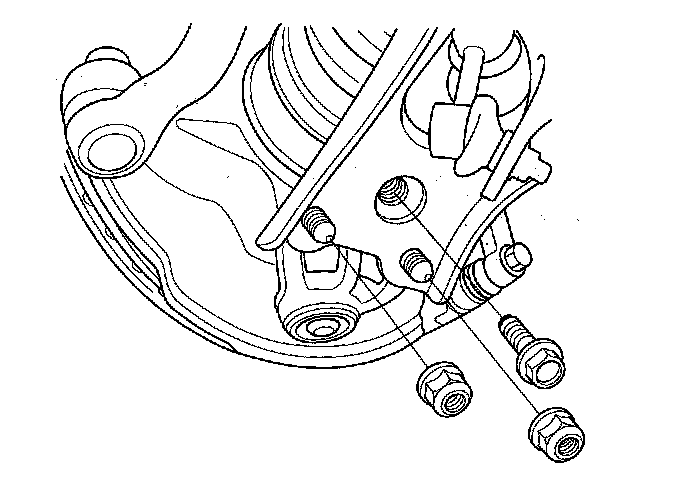 5. Remove the nuts and bolt, then separate the lower arm with a prybar.