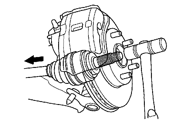 7. Pull the knuckle outward, and remove the driveshaft outboard joint from the front wheel hub.