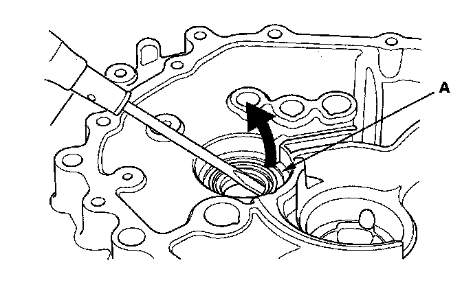 2. Remove the oil seal (A) from the transmission side. Be careful when removing the oil seal so the clutch housing is not damaged.