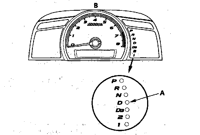 When the PCM senses an abnormality in the input or output system, the D indicator (A) in the gauge control module (tach) (B) will usually blink.