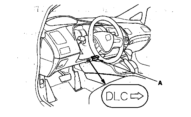When the D indicator has been reported on, connect the HDS to the DLC (A) located behind the driver's dashboard lower cover. Turn the ignition switch to ON (II), select SCS mode, then the D indicator will indicate flash the DTC.
