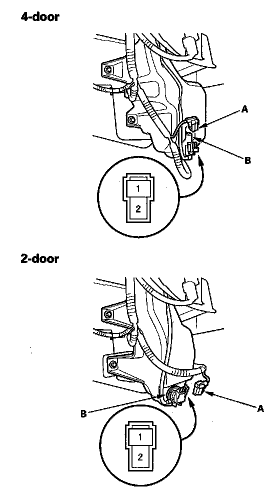 3. Test the motor by connecting battery power to the No. 1 terminal and ground the No. 2 terminal of the washer motor. The motor should run.