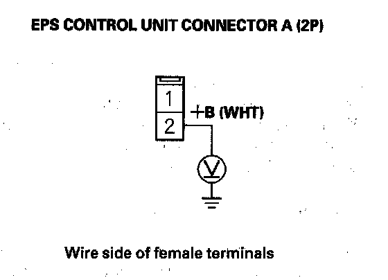 8. Measure voltage between EPS control unit connector A (2P) terminal No. 2 and body ground.