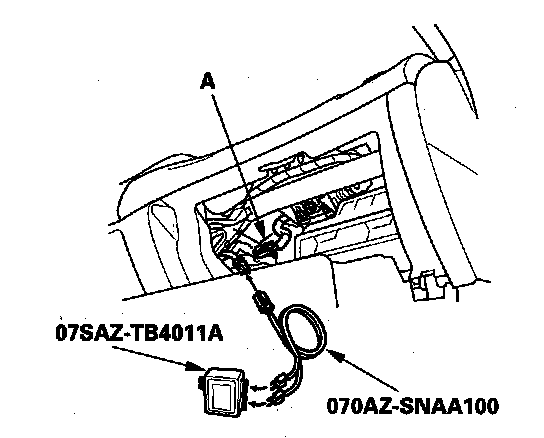 4. Disconnect the front passenger's airbag 4P connector (A) from dashboard wire harness.