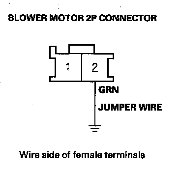 7. Connect the blower motor 2P connector No. 2 terminal to body ground with a jumper wire.