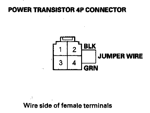 13. Connect the power transistor 4P connector No. 2 and No. 4 terminals with a jumper wire.