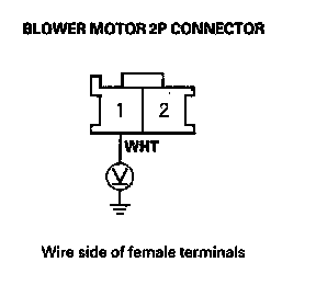 29. Measure the voltage between the blower motor 2P connector No. 1 terminal and body ground.