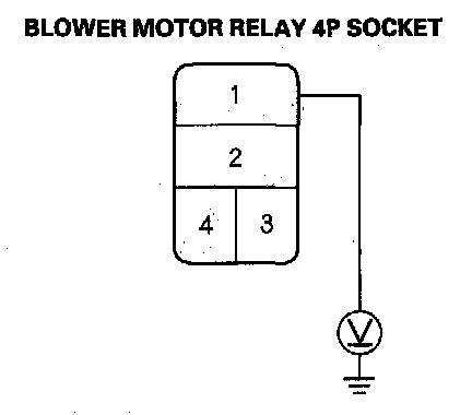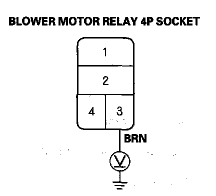 34. Measure the voltage between the blower motor relay 4P socket No. 3 terminal and body ground.