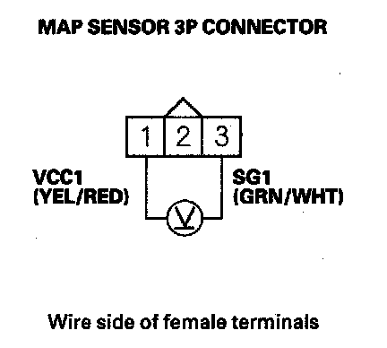 7. Measure voltage between MAP sensor 3P connector terminals No. 1 and No. 3.
