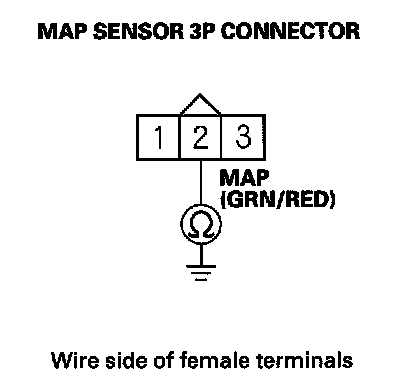 15. Check for continuity between MAP sensor 3P connector terminal No. 2 and body ground.