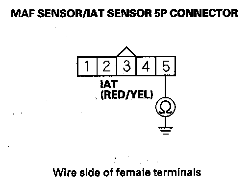 10. Check for continuity between MAF sensor/IAT sensor 5P connector terminal No. 5 and body ground.