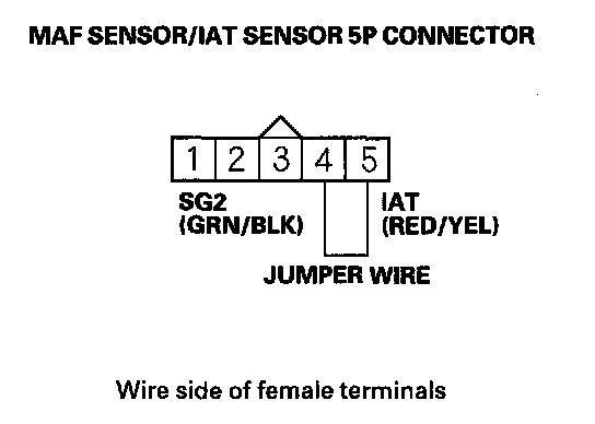 9. Remove the jumper wire from the MAF sensor/IAT sensor 5P connector.