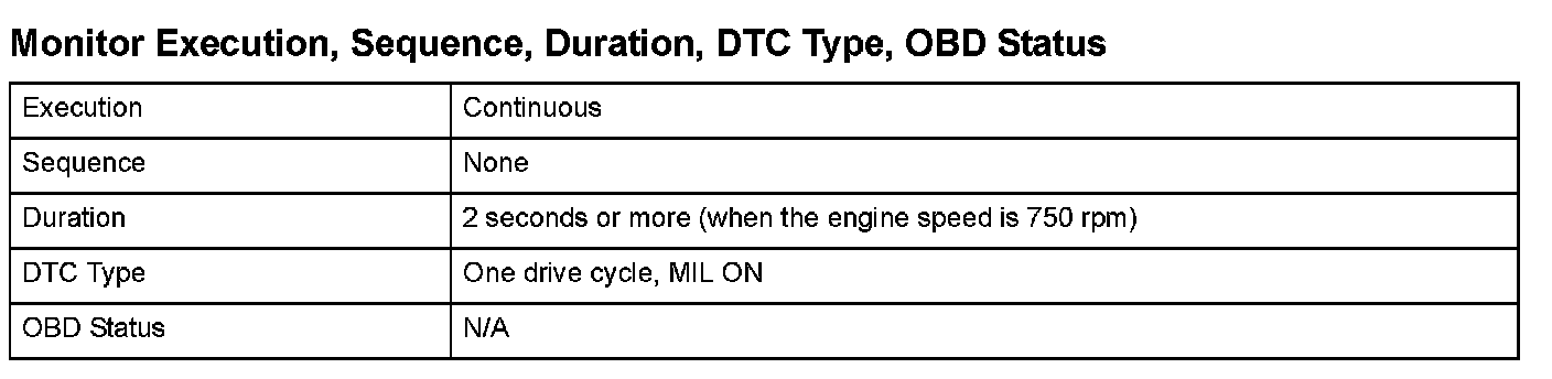 Monitor Execution, Sequence, Duration, DTC Type, OBD Status
