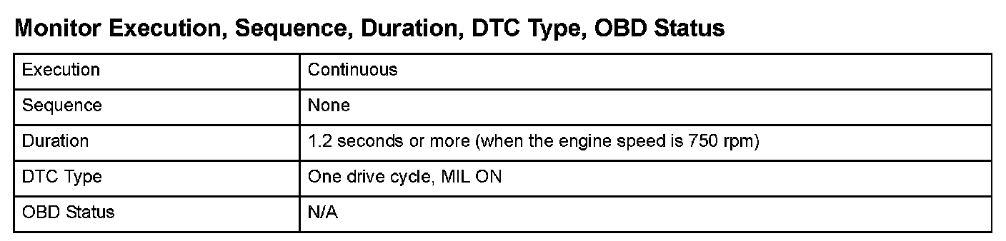 Monitor Execution, Sequence, Duration, DTC Type, OBD Status